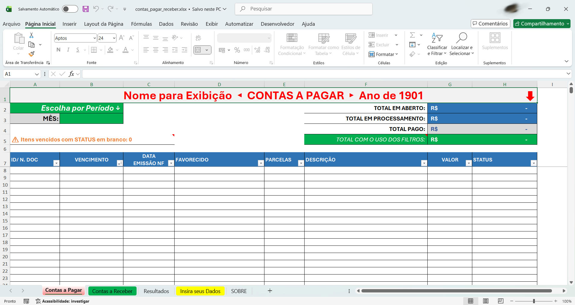 ⚠️ Ao fazer o download e abrir a planilha deve aparecer uma mensagem para Habilitar Conteúdo, pois se trata de arquivo baixado da Internet e o conteúdo deve ser habilitado clicando no botão, mas, E ISSO É IMPORTANTE, esta planilha não utiliza Macros, assim outros avisos não devem aparecer ao abrir e usar a planilha.
